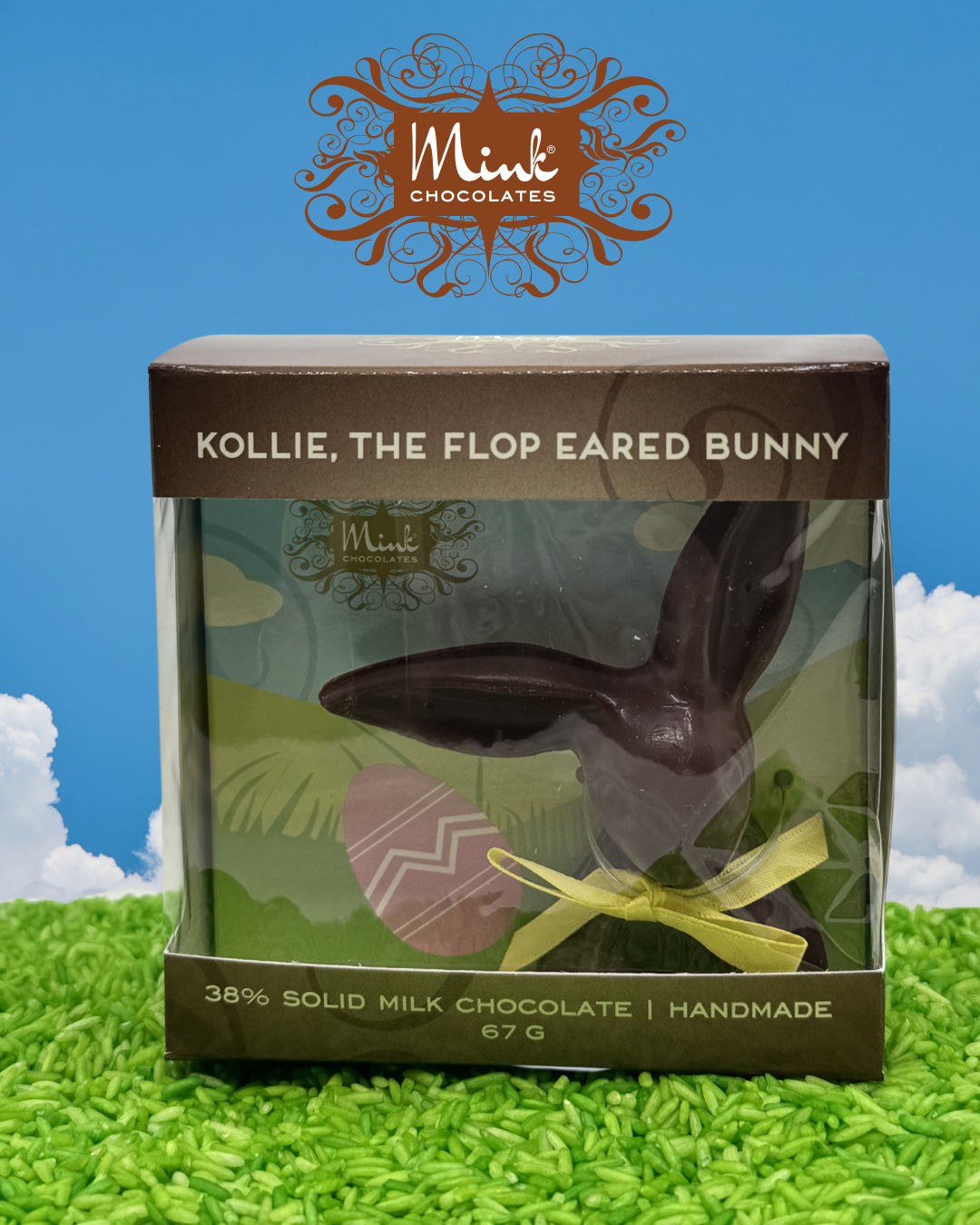 Solid 38% milk chocolate bunny. Bowtied, ready for a new home!